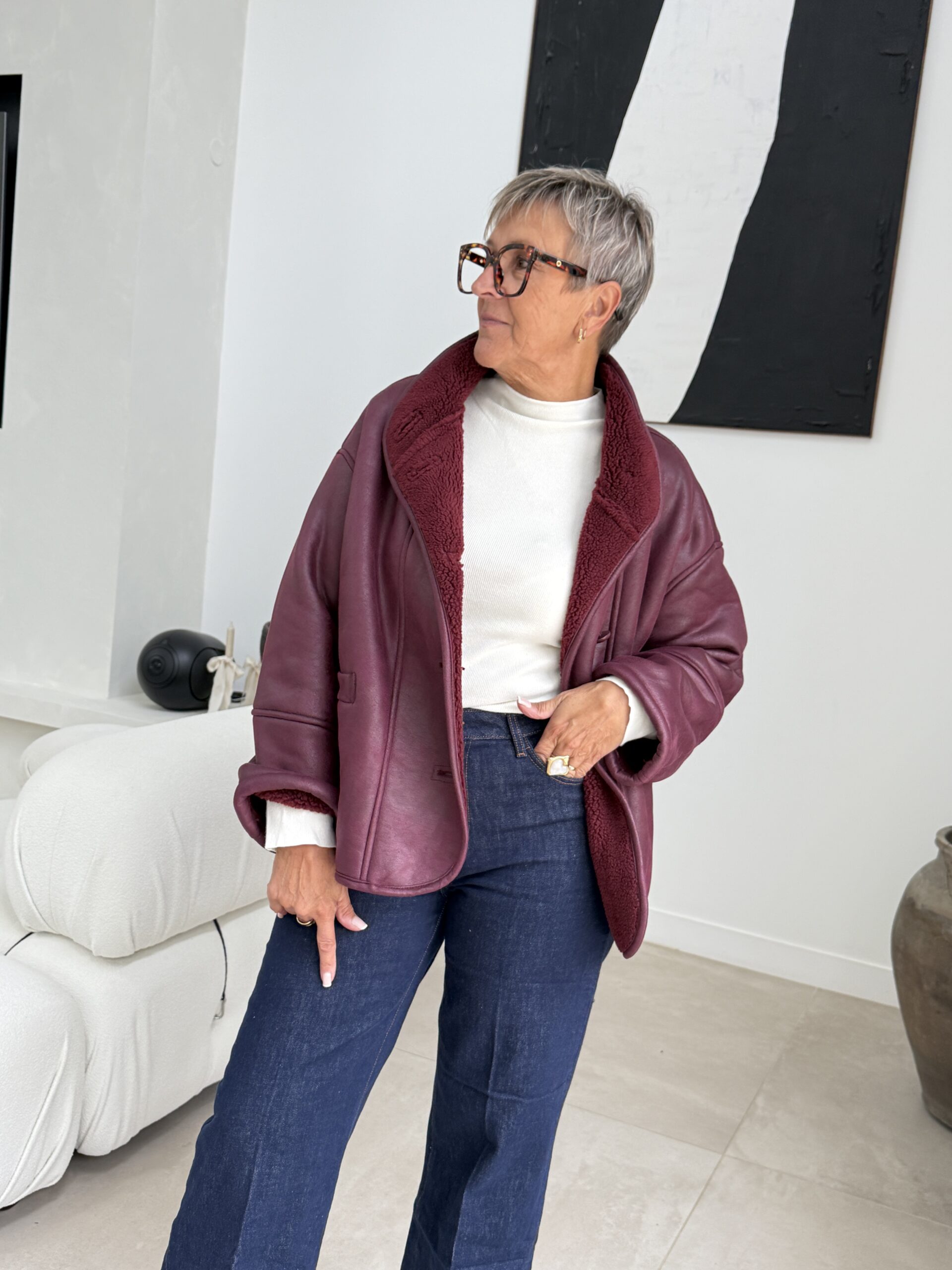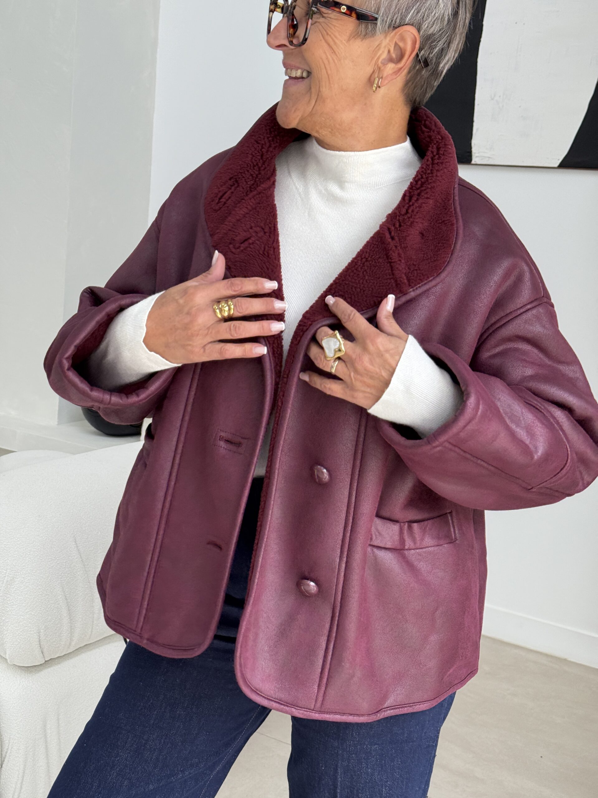 La veste Apolline incarne l’alliance parfaite entre style et confort. Sa teinte bordeaux profonde apporte une touche de caractère, tandis que son intérieur en shearling doux assure une chaleur cocooning idéale pour la saison froide. Sa coupe courte et structurée modernise la silhouette tout en restant facile à porter au quotidien.