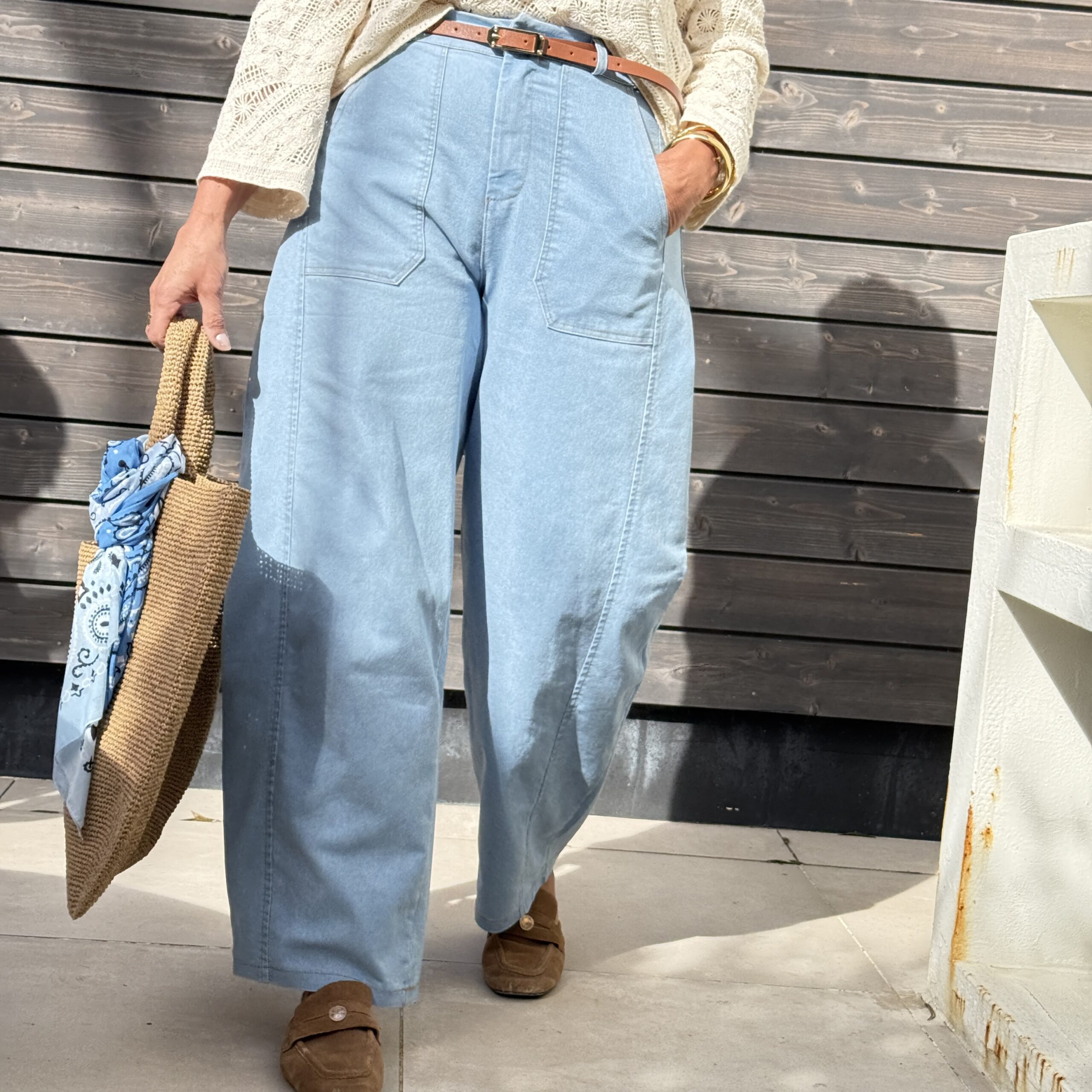 Pantalon BARREL taille mi-haute, coupe arrondie et légèrement resserrée à la cheville. Une pièce confortable et moderne pour un style décontracté mais élégant.