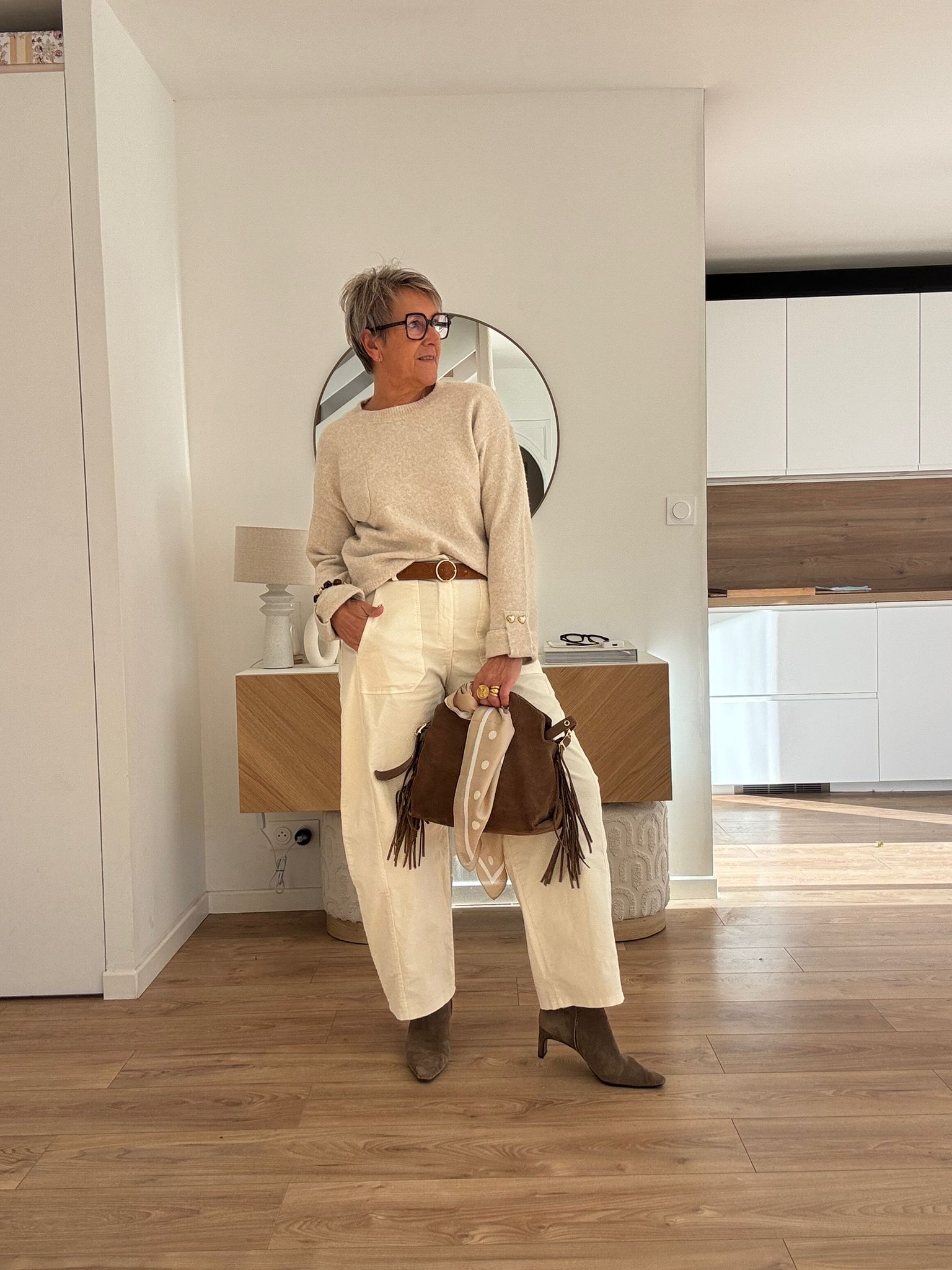 Pantalon BARREL taille mi-haute, coupe arrondie et légèrement resserrée à la cheville. Une pièce confortable et moderne pour un style décontracté mais élégant.