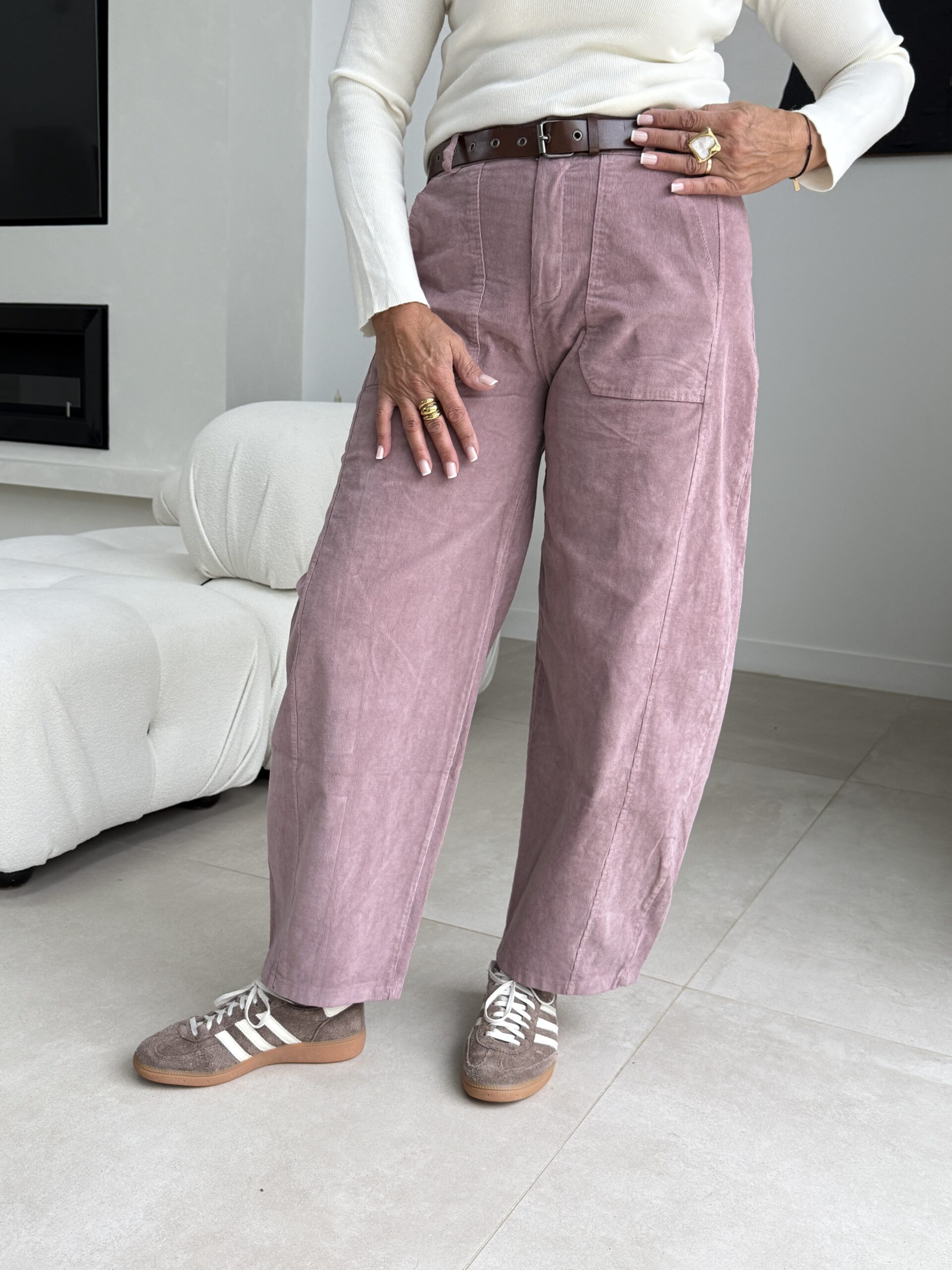 Pantalon BARREL taille mi-haute, coupe arrondie et légèrement resserrée à la cheville. Une pièce confortable et moderne pour un style décontracté mais élégant.