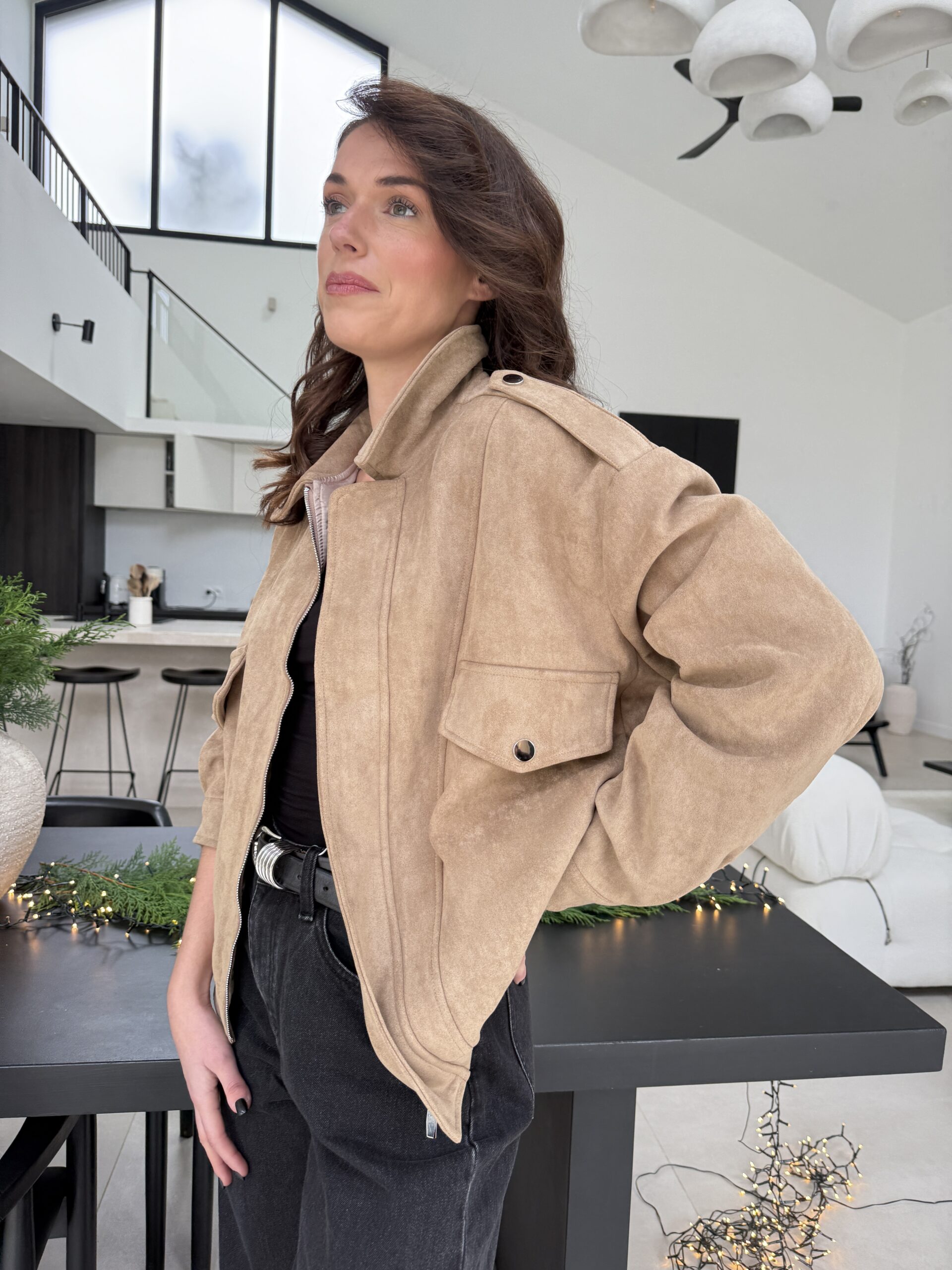 Un style effortless entre veste saharienne, trench moderne et blouson oversize, qui structure la silhouette tout en gardant une allure naturelle et tendance.