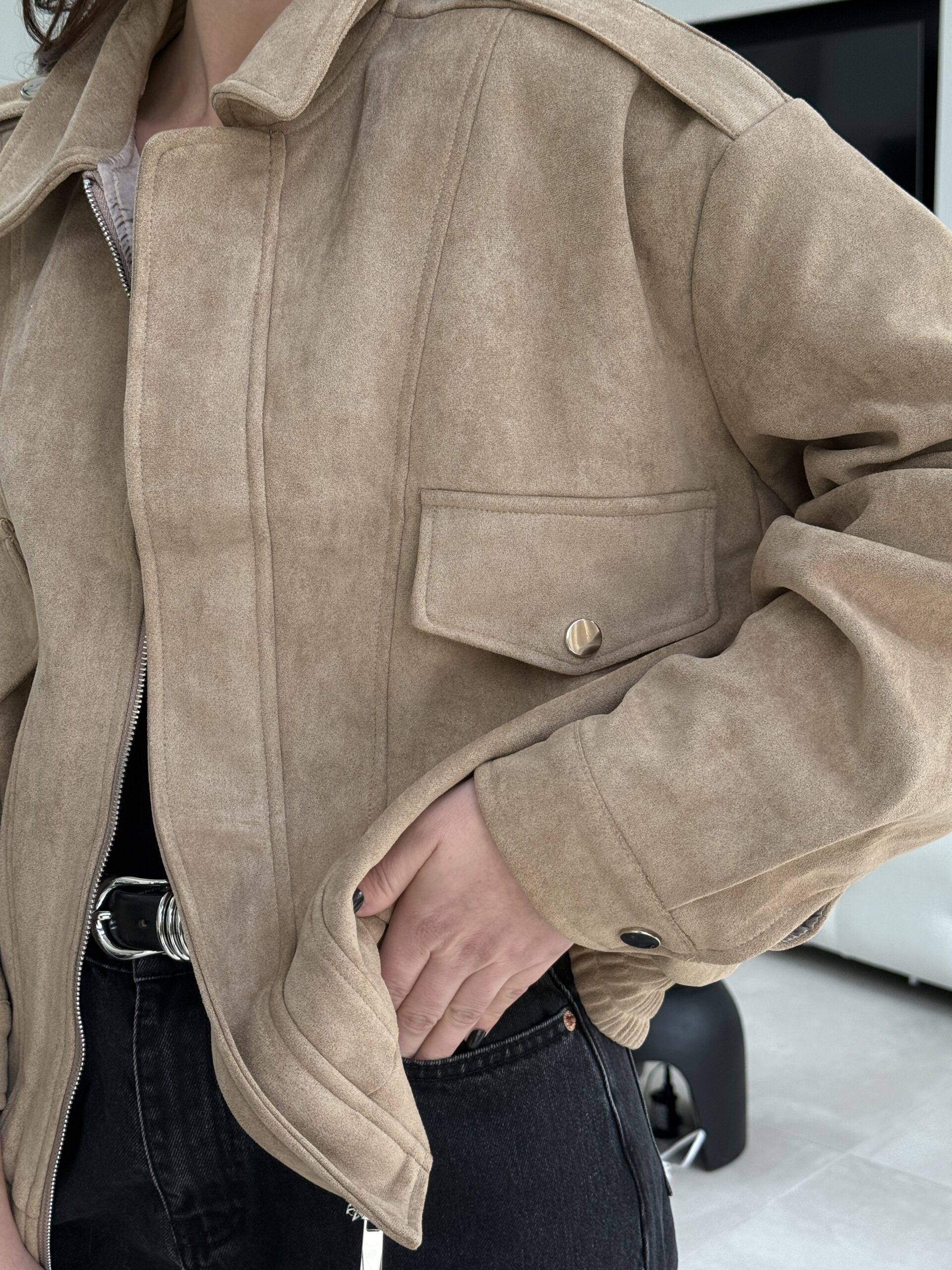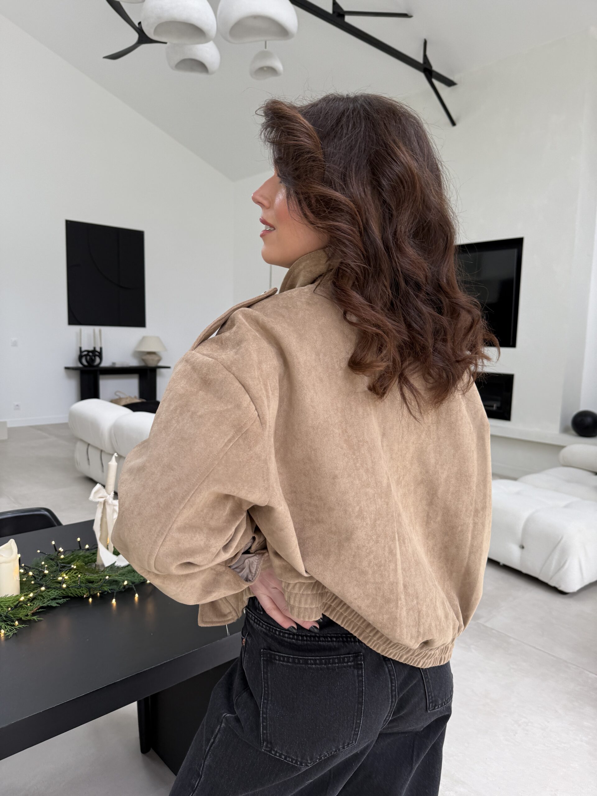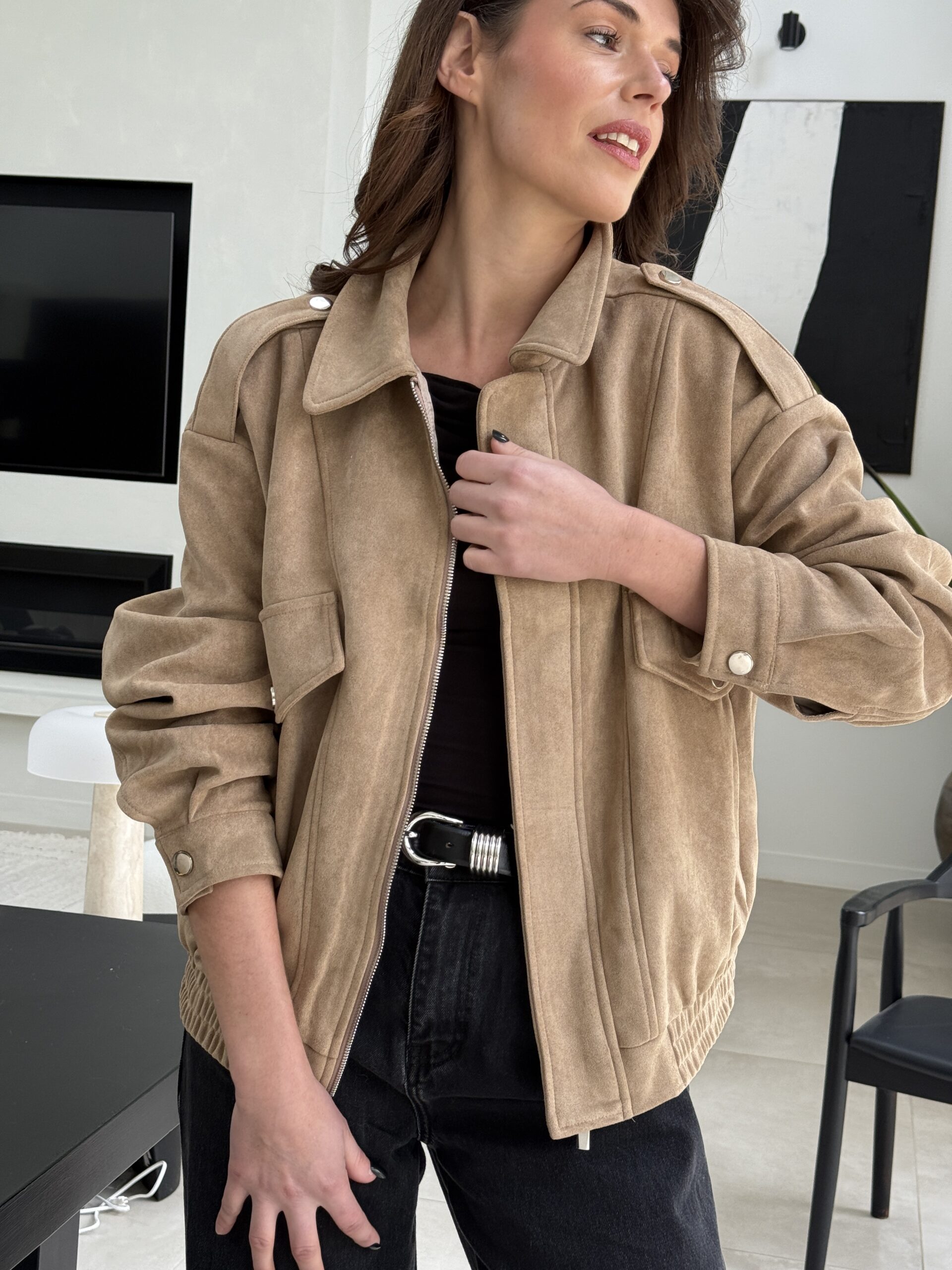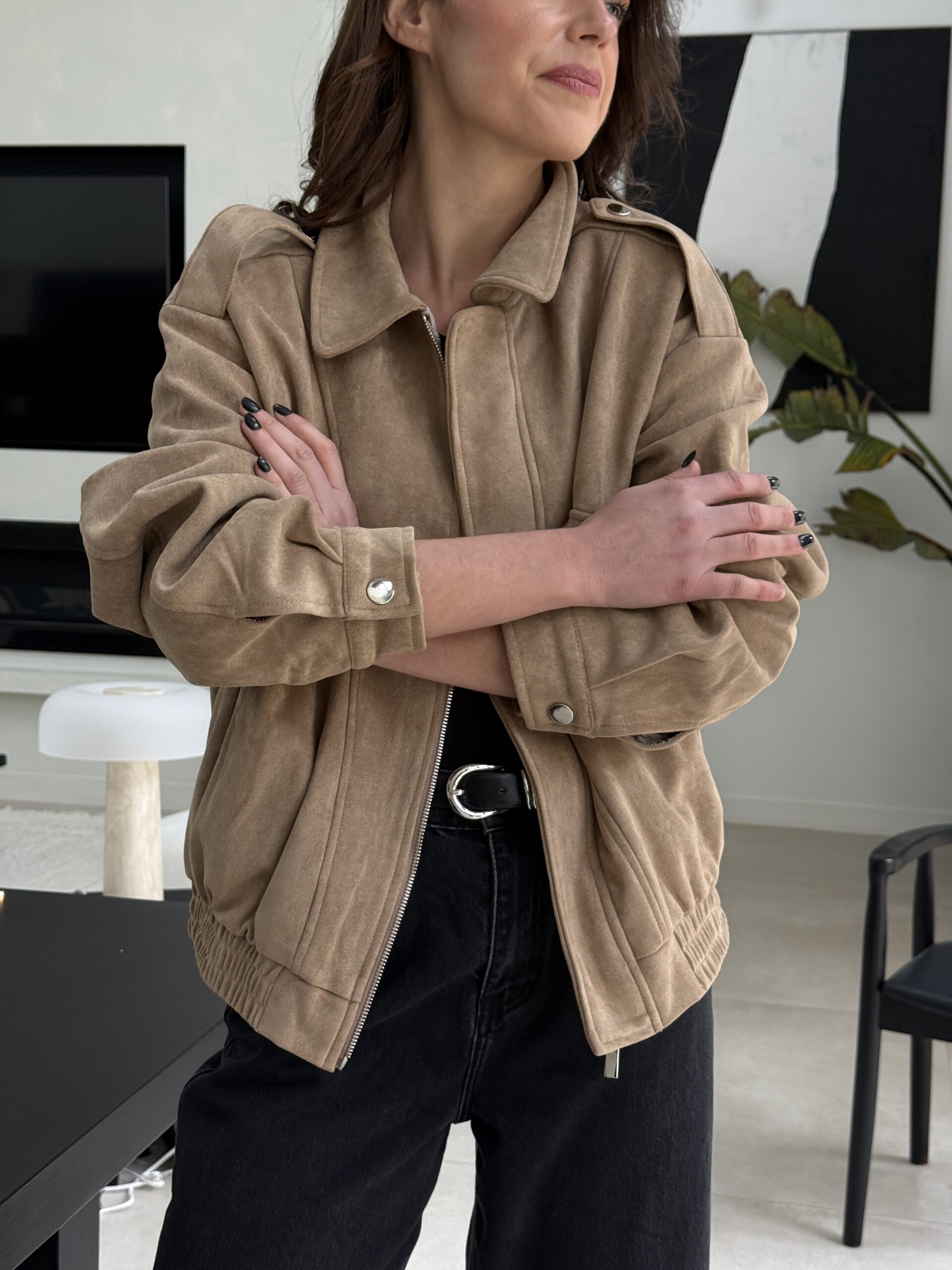 Une veste en suédine beige à l’allure décontractée et élégante, parfaite pour des looks casual chic. Sa coupe oversize, ses épaules structurées et ses détails inspirés du style saharienne lui confèrent un charme intemporel. Confortable, douce au toucher et facile à associer, c’est la pièce idéale du quotidien.
