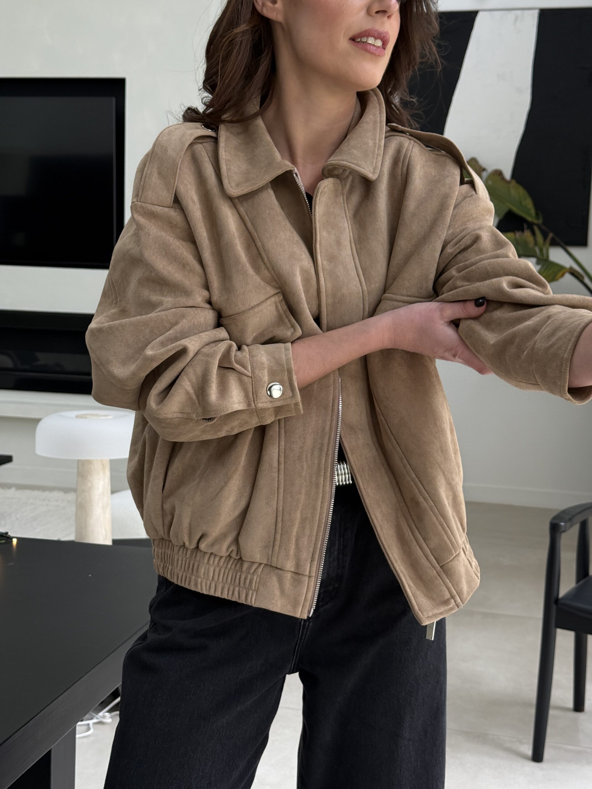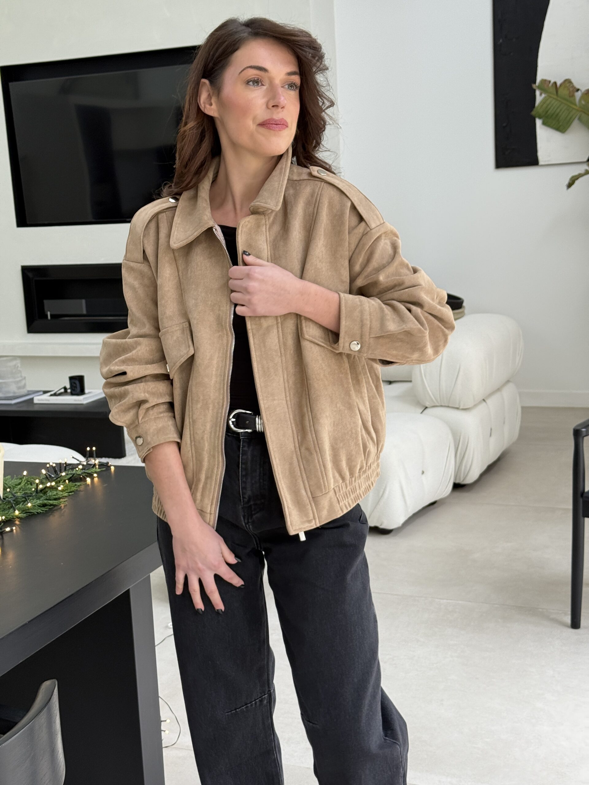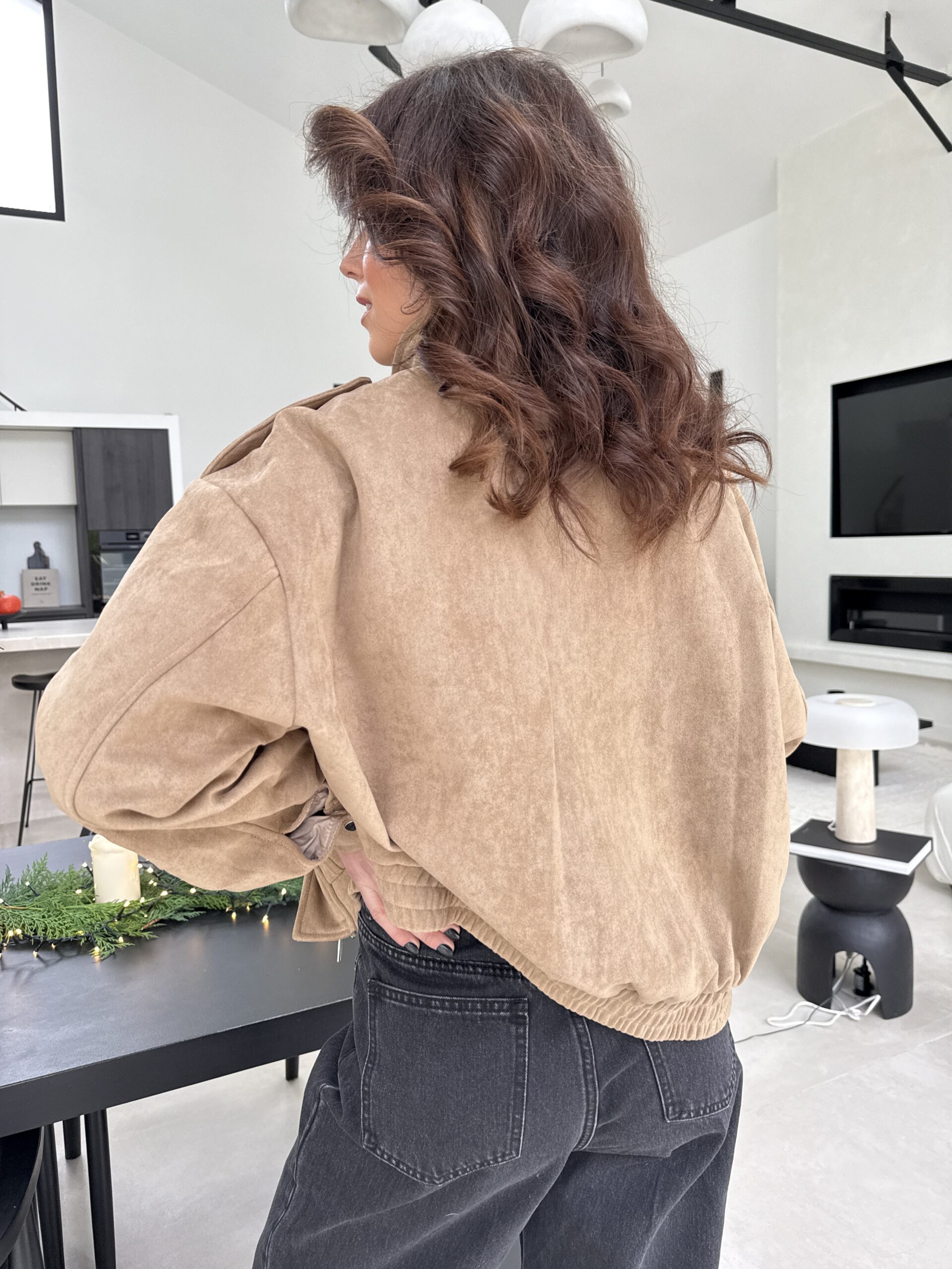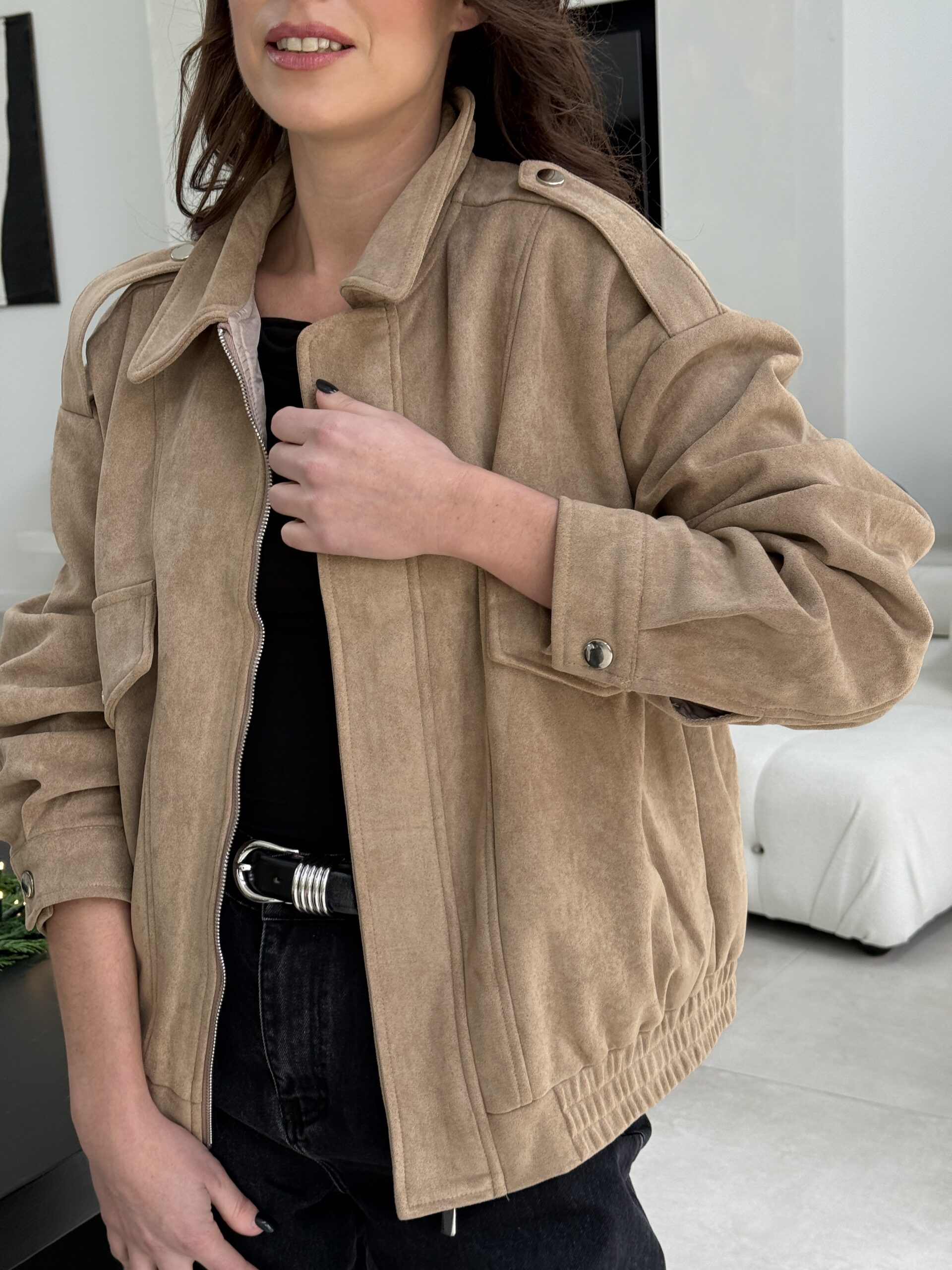 Une veste en suédine beige à l’allure décontractée et élégante, parfaite pour des looks casual chic. Sa coupe oversize, ses épaules structurées et ses détails inspirés du style saharienne lui confèrent un charme intemporel. Confortable, douce au toucher et facile à associer, c’est la pièce idéale du quotidien.